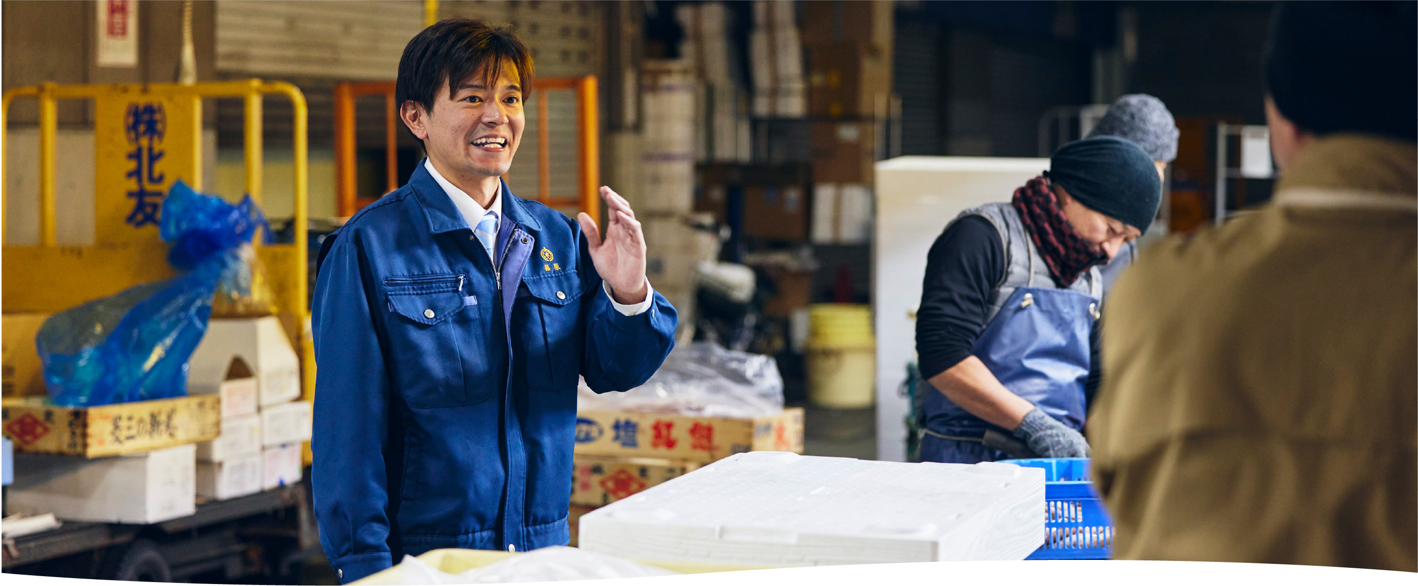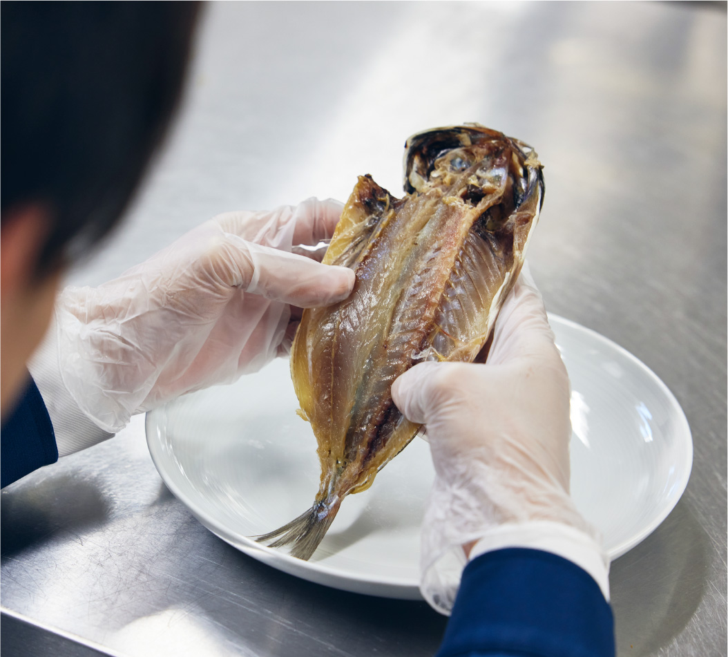 冷凍の塩サバや塩サンマなどの仕入れや販売を行う塩冷部では、冷凍魚を原料とした新たな商品開発に努めてきた。漁獲量の減少が進む今、鮮魚の供給を補う要として冷凍部門への期待が高まる中で、売れ行きが低迷していた新商品の戦略を作り変え、新たな一手となる地域特産物に着目。部署としては初となる惣菜市場の参入を果たした。より良い原料を使った「アジの開き」の開発に乗り出し、付加価値のある商品づくりに挑戦した。